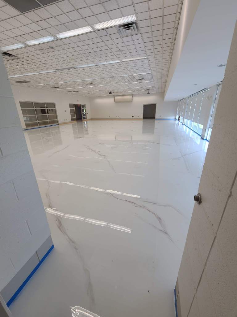Epoxy floors are known for their durability and resilience. They can withstand heavy foot traffic, impact, and abrasion. Epoxy has high chemical resistance which extends the life of the flooring. Epoxy floors are known to last 15+ years.